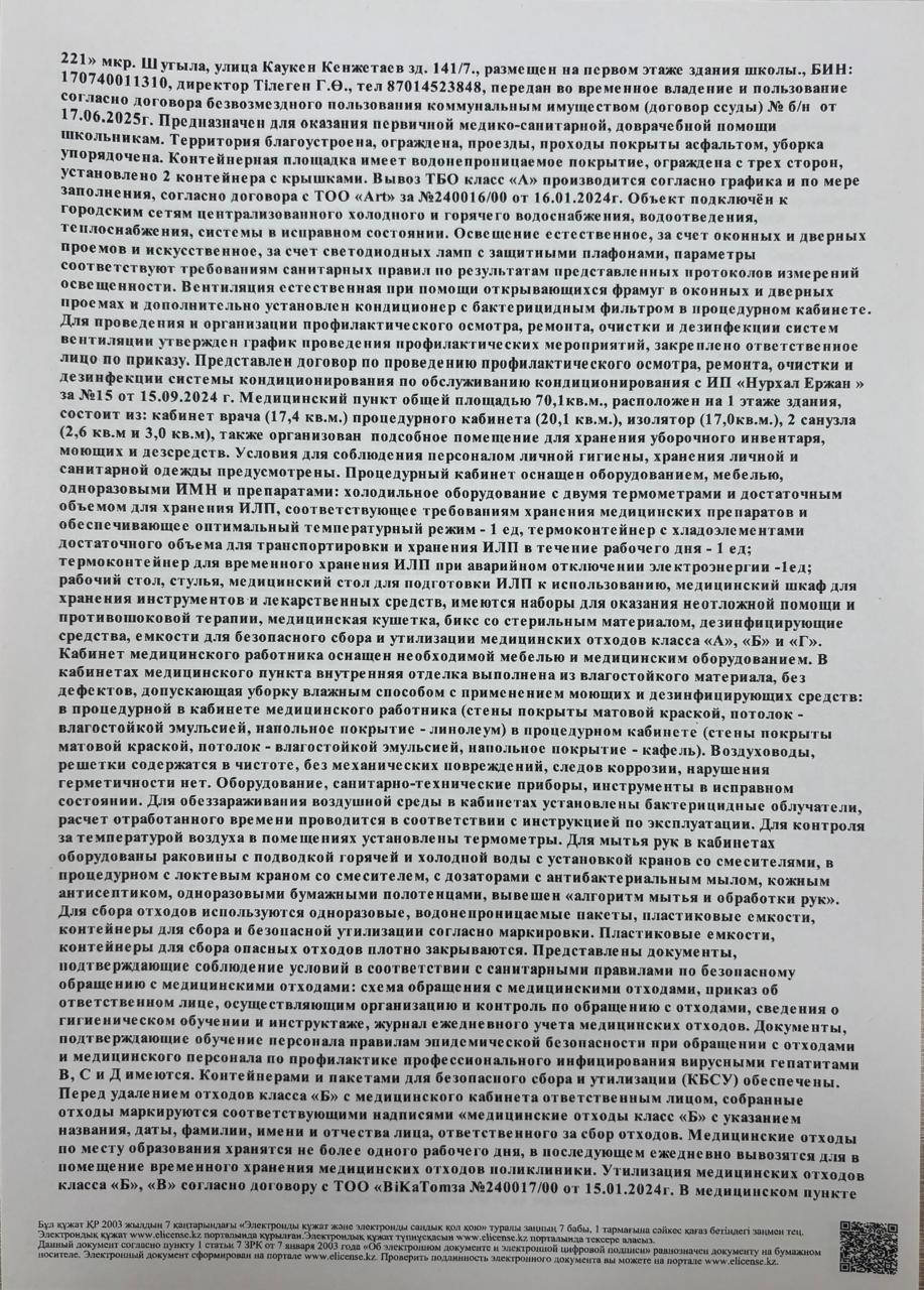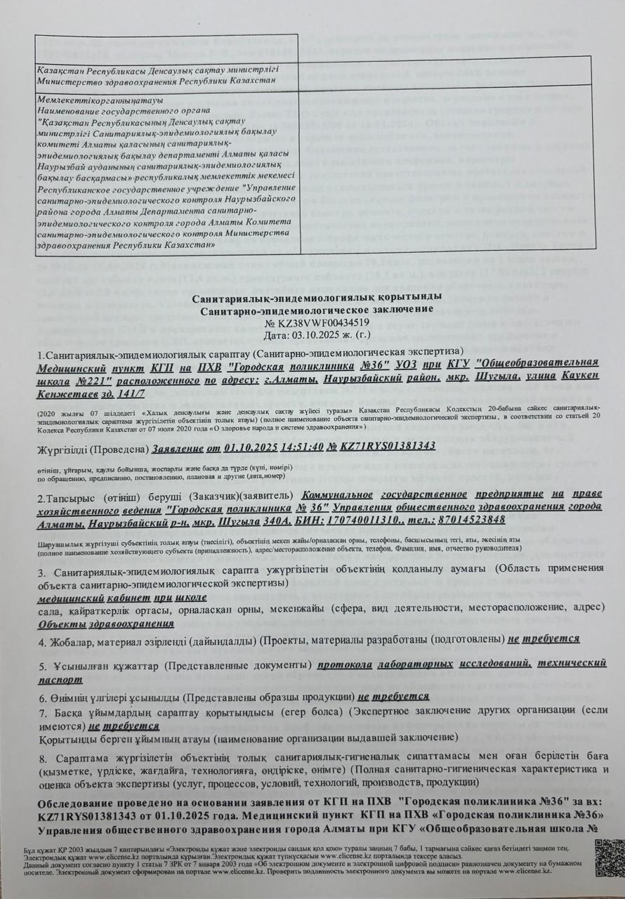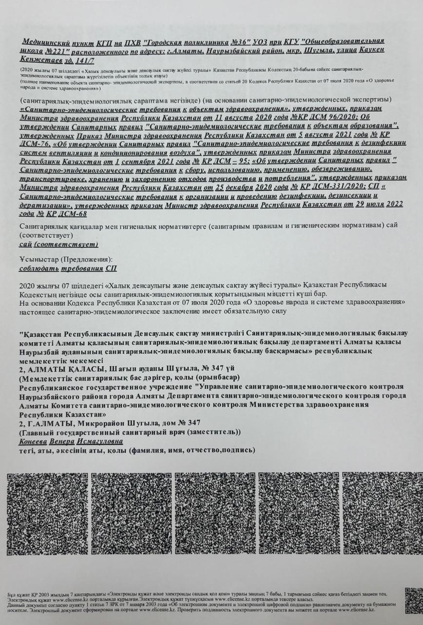 Санитарлық-эпидемиологиялық қорытынды » «№221 жалпы білім беретін мектеп»