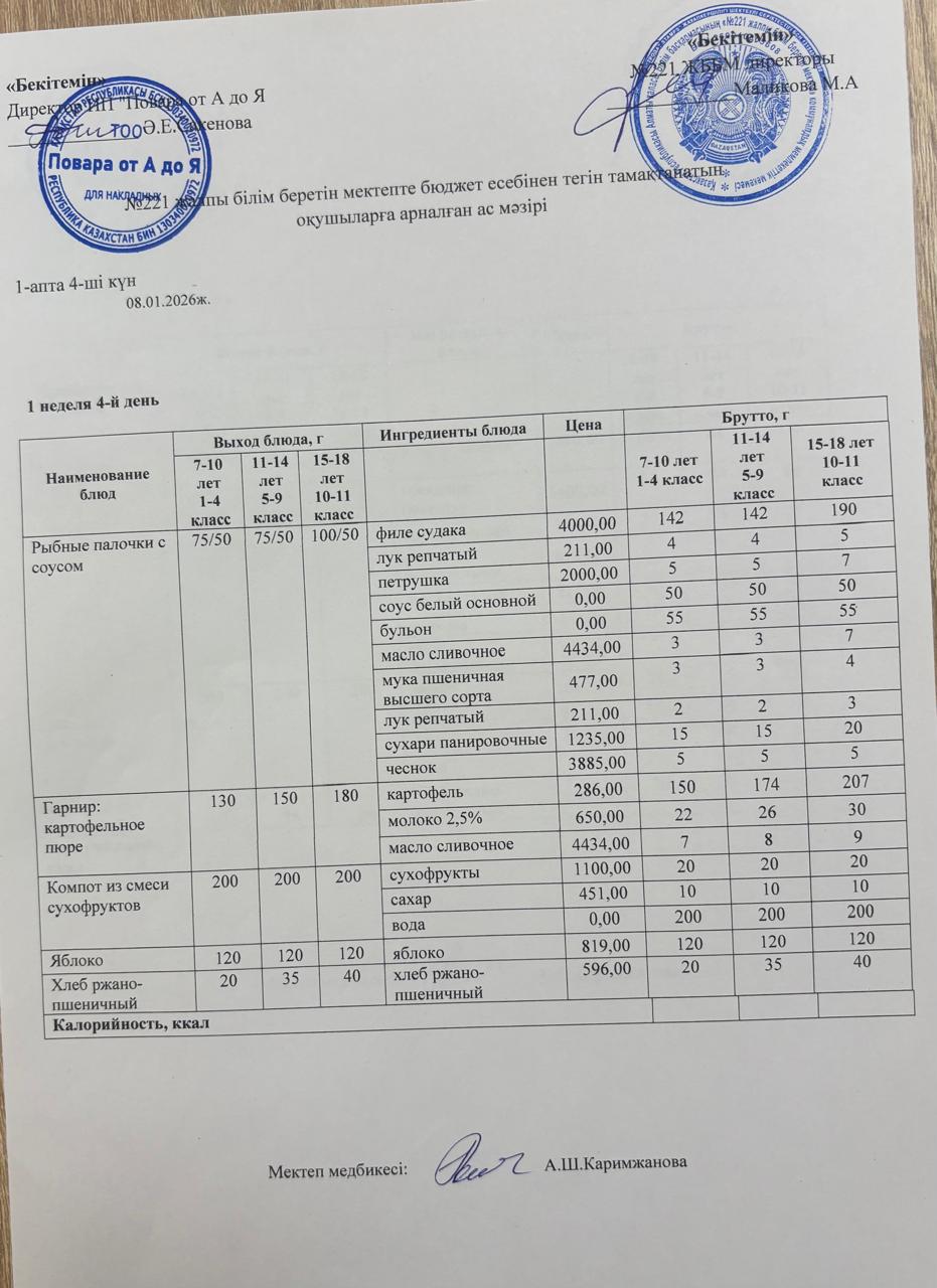 Күнделікті меню 08.01.2026 » «№221 жалпы білім беретін мектеп»