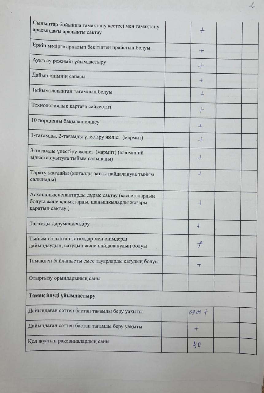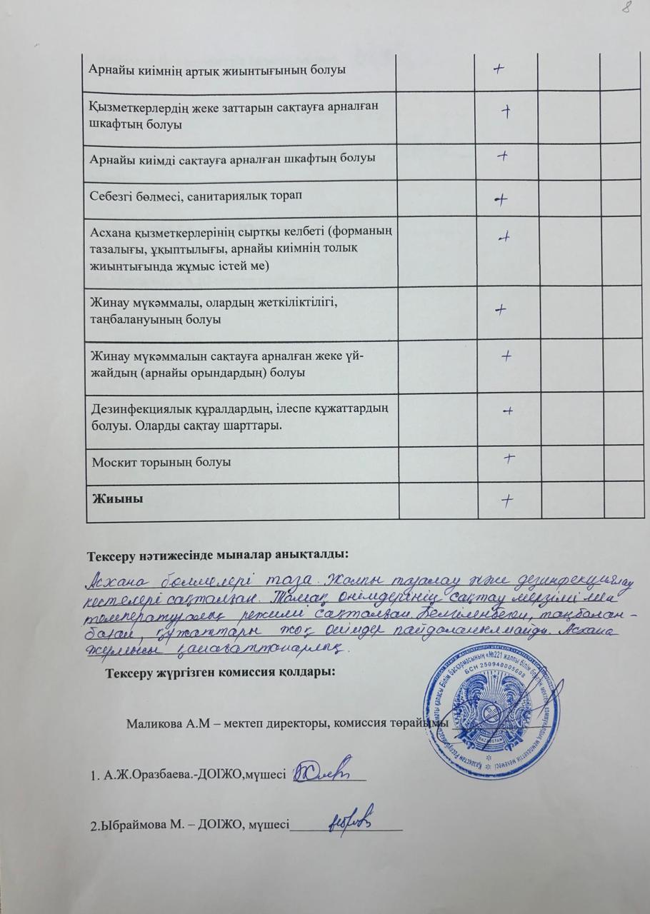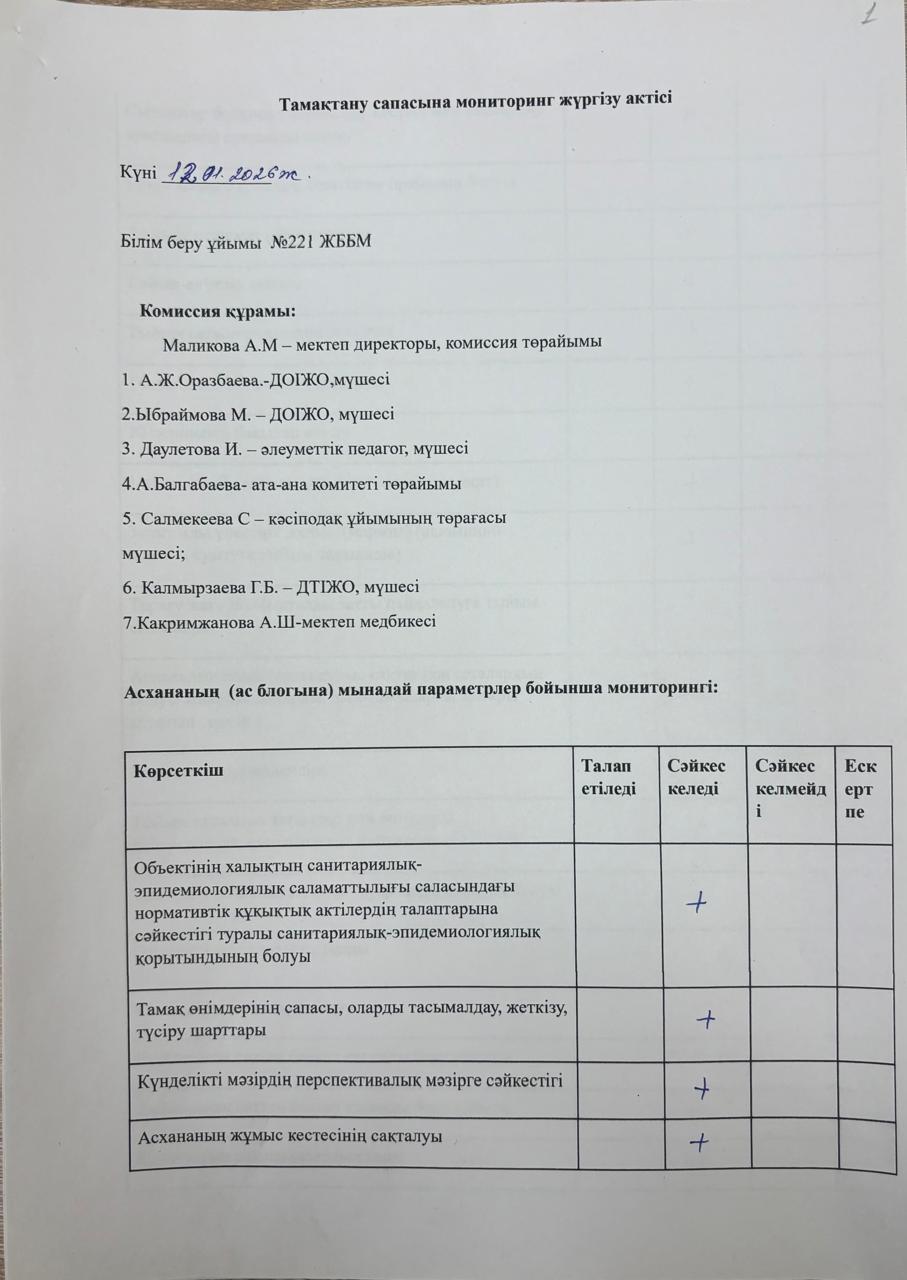 Тамақтану сапасына мониторинг жүргізу актісі » «№221 жалпы білім беретін мектеп»