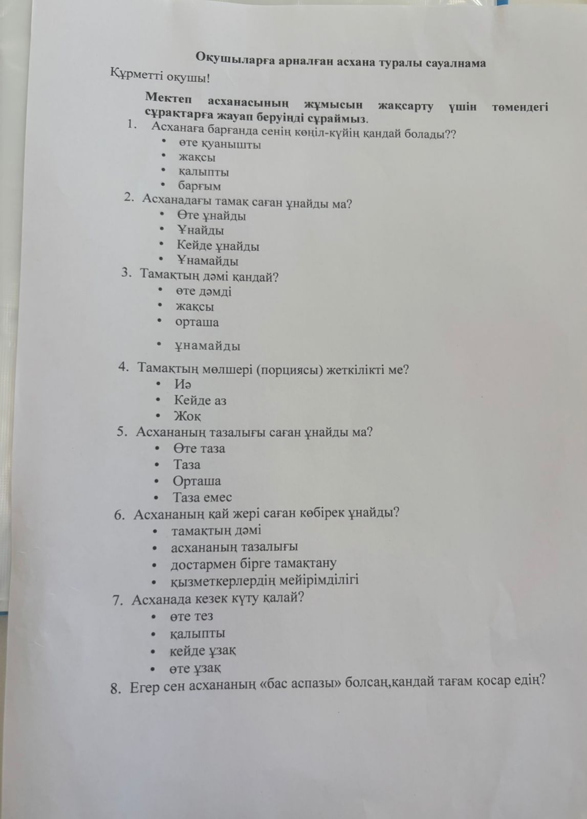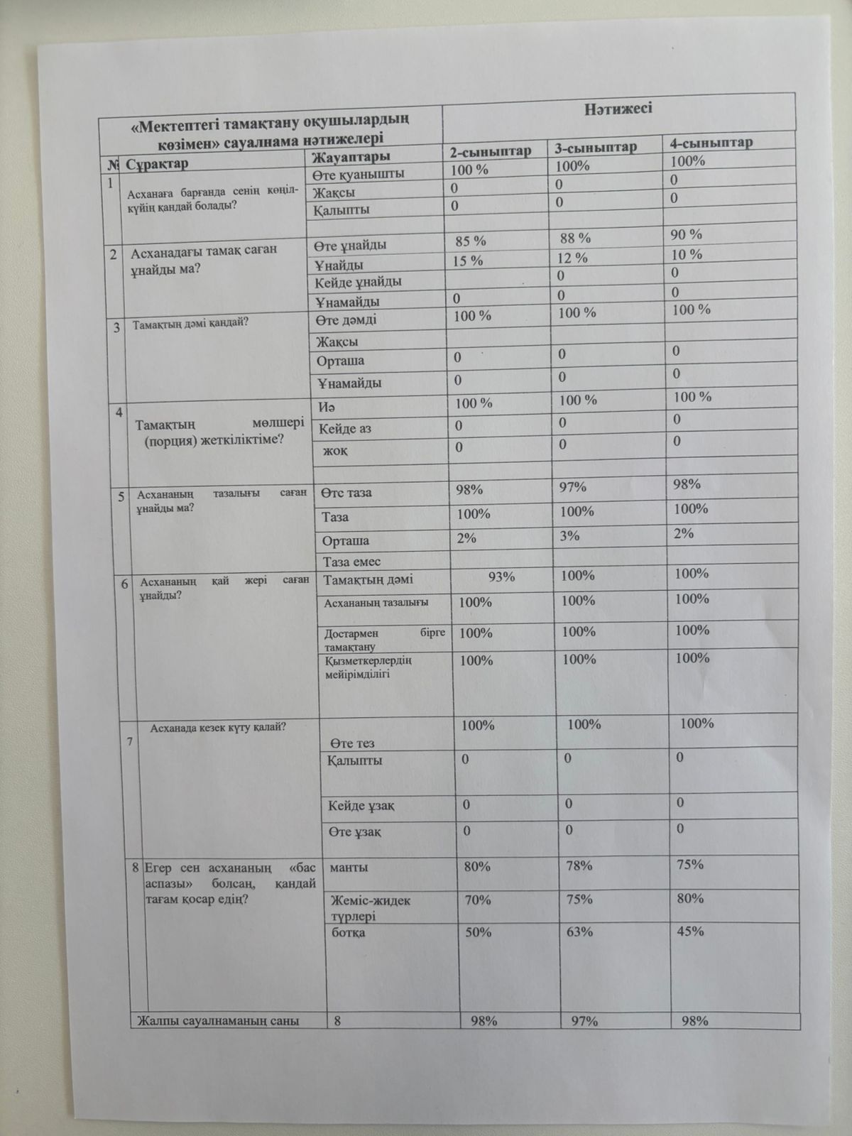 Оқушылардан алынған сауалнама нәтижелері » «№221 жалпы білім беретін мектеп»