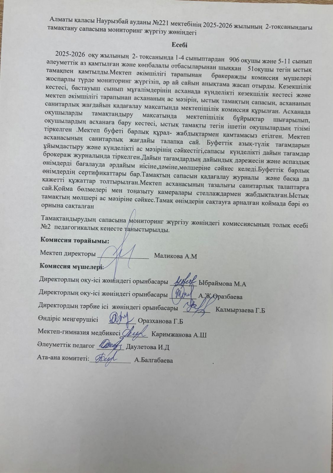 Бракеражды комиссия отырысының №5 хаттамасы » «№221 жалпы білім беретін мектеп»
